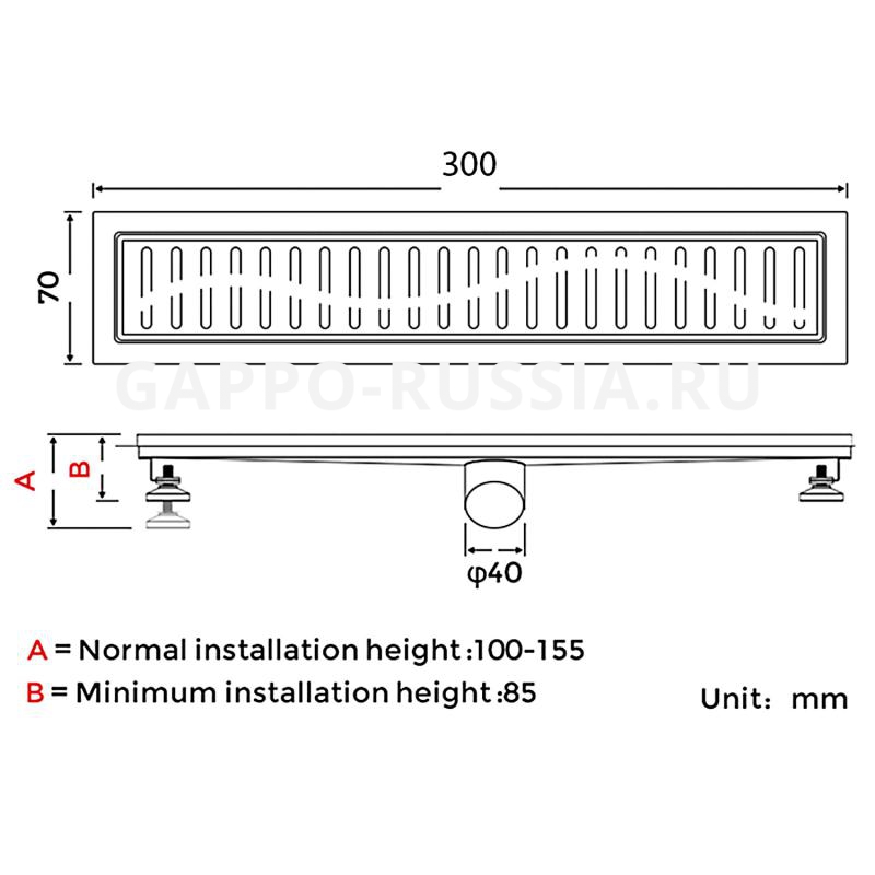 Трап для душа нержавейка мокрый и сухой гидрозатвор 70*300 GAPPO G83007-3
