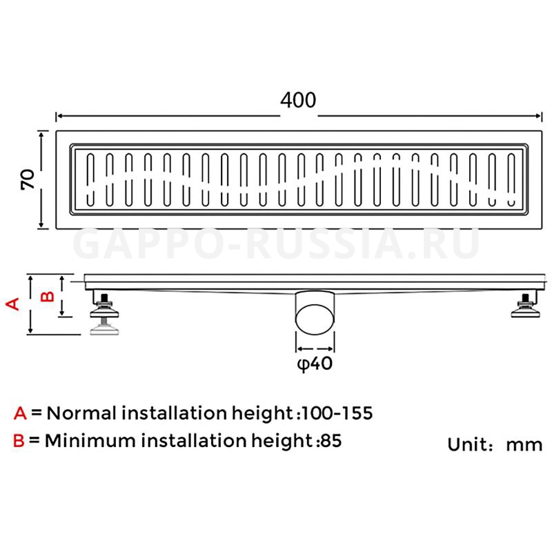 Трап для душа нержавейка мокрый и сухой гидрозатвор 70*400 GAPPO G84007-3