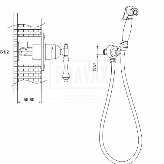Встроенный гигиенический душ FAOP A7205-4 (бронза)