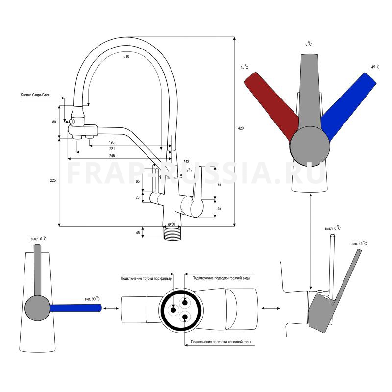 F4374 Смеситель для кухни гибк.излив+фильтр (хром)