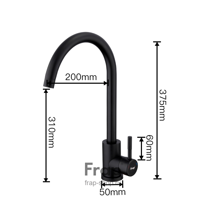 F40899-4 Frap Смеситель на кухню бок/руч. высоким носиком (черный, нерж)