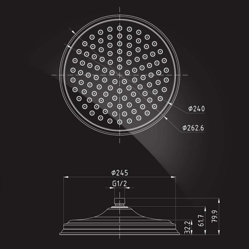 CD-260-Gold Верхний душ латунь, круглый D=262 мм, ClassicLine (золото)