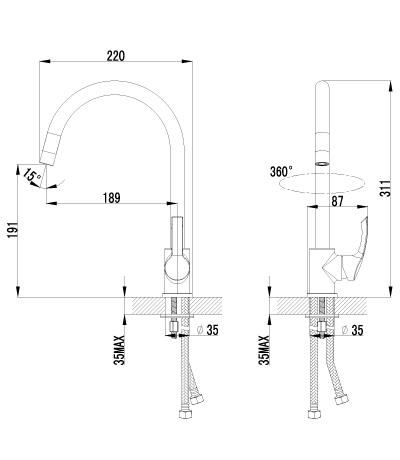 LM1105C plus STRIKE Смеситель для кухни с изливом, 311мм хром