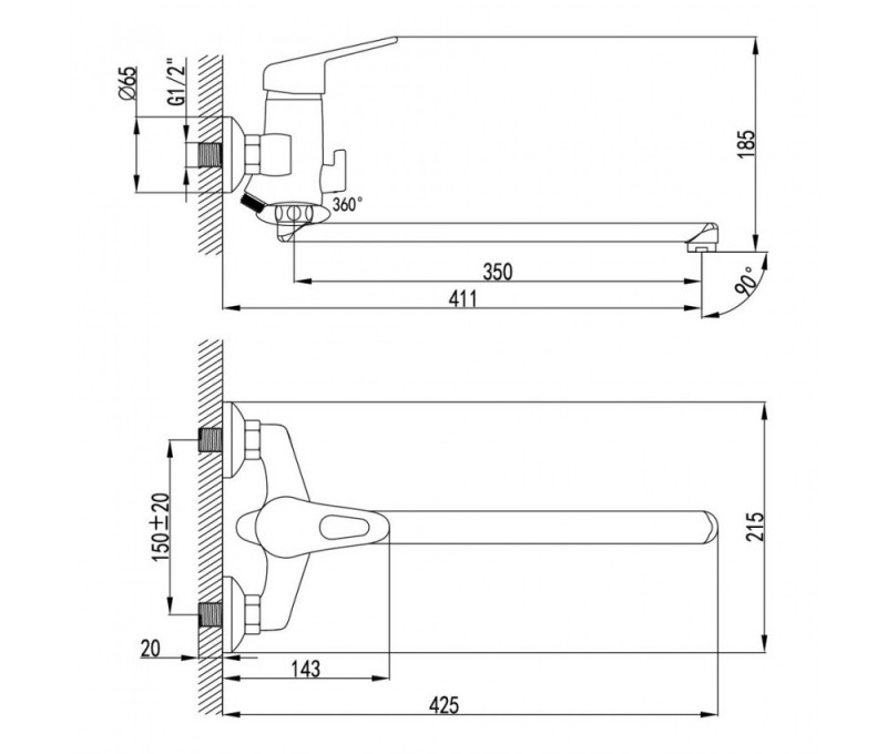 LEMARK LM4151С LUNA Смеситель на ванну/умыв 40к на кер. пер. излив 350 мм.