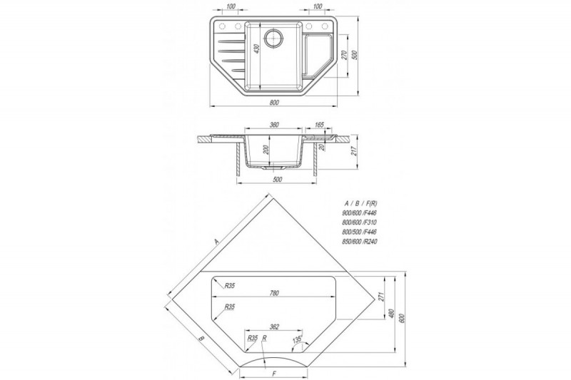 Общий габарит (мм): 800х500х217