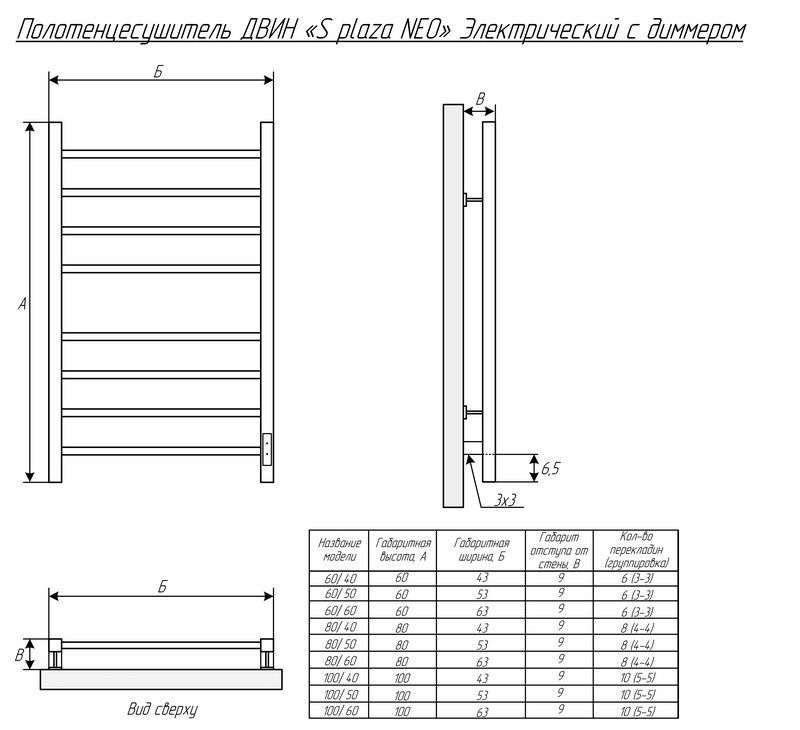 Полотенцесушитель ДВИН S plaza neo 60/50 Электрический (К диммер квадрат Полированный)